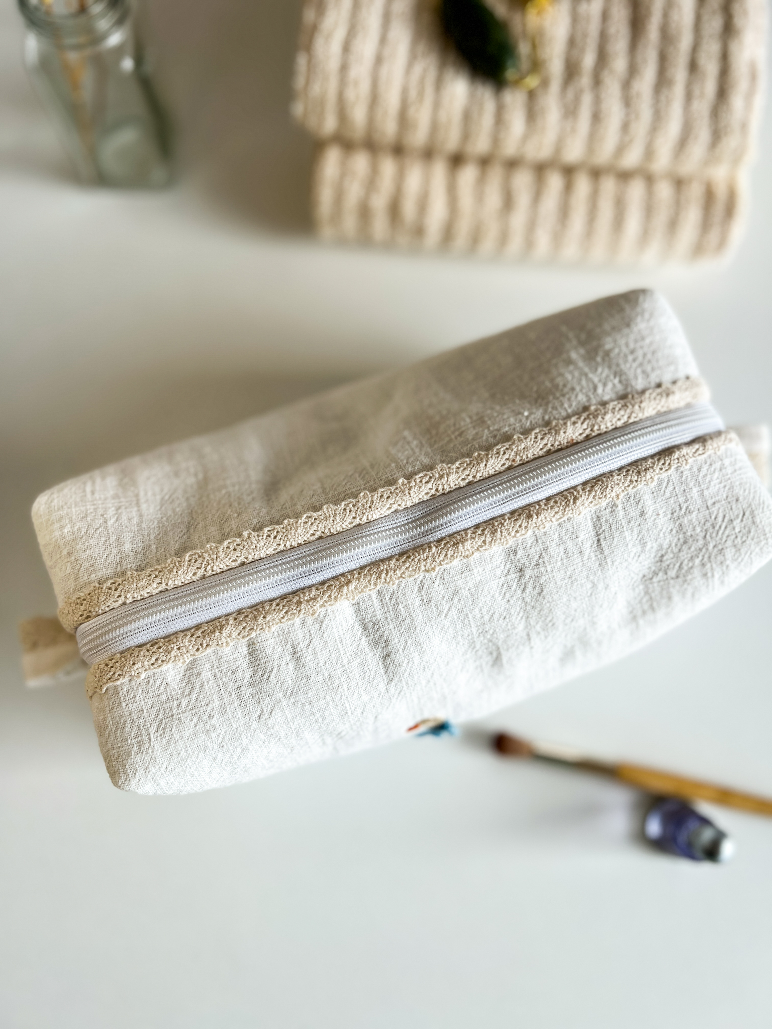 Delikatna koronka przy zamku dodaje całości romantycznego uroku i sprawia, że kosmetyczka prezentuje się niezwykle lekko i kobieco. To połączenie estetyki, tradycyjnego rękodzieła i codziennej funkcjonalności.